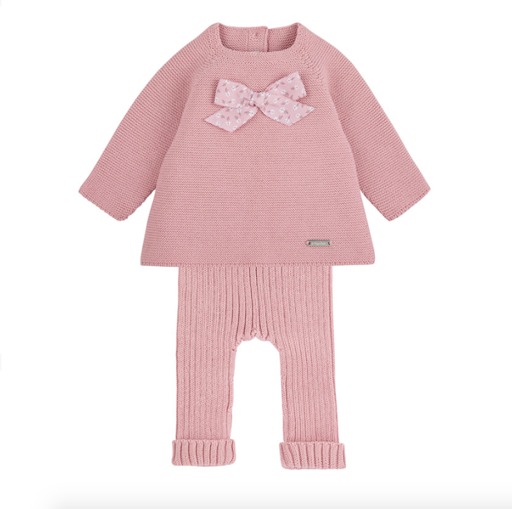 Liberty Bow Set (Sweater+Trousers)-Pale Pink