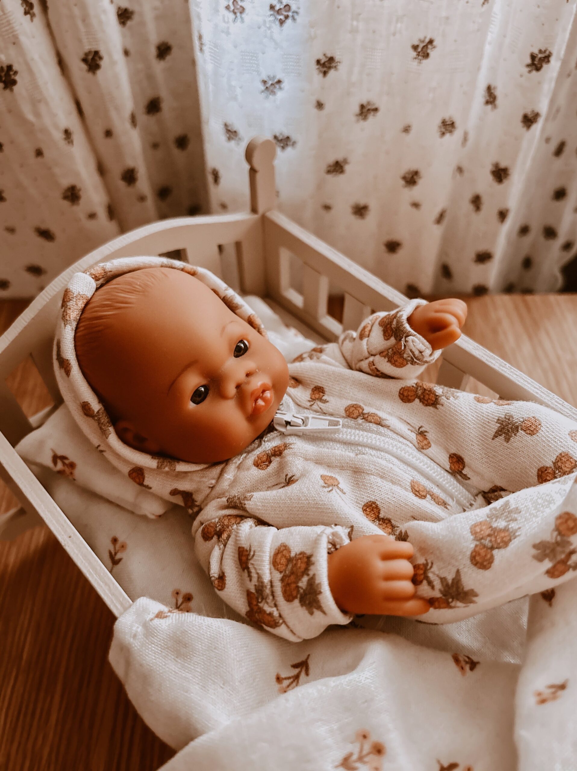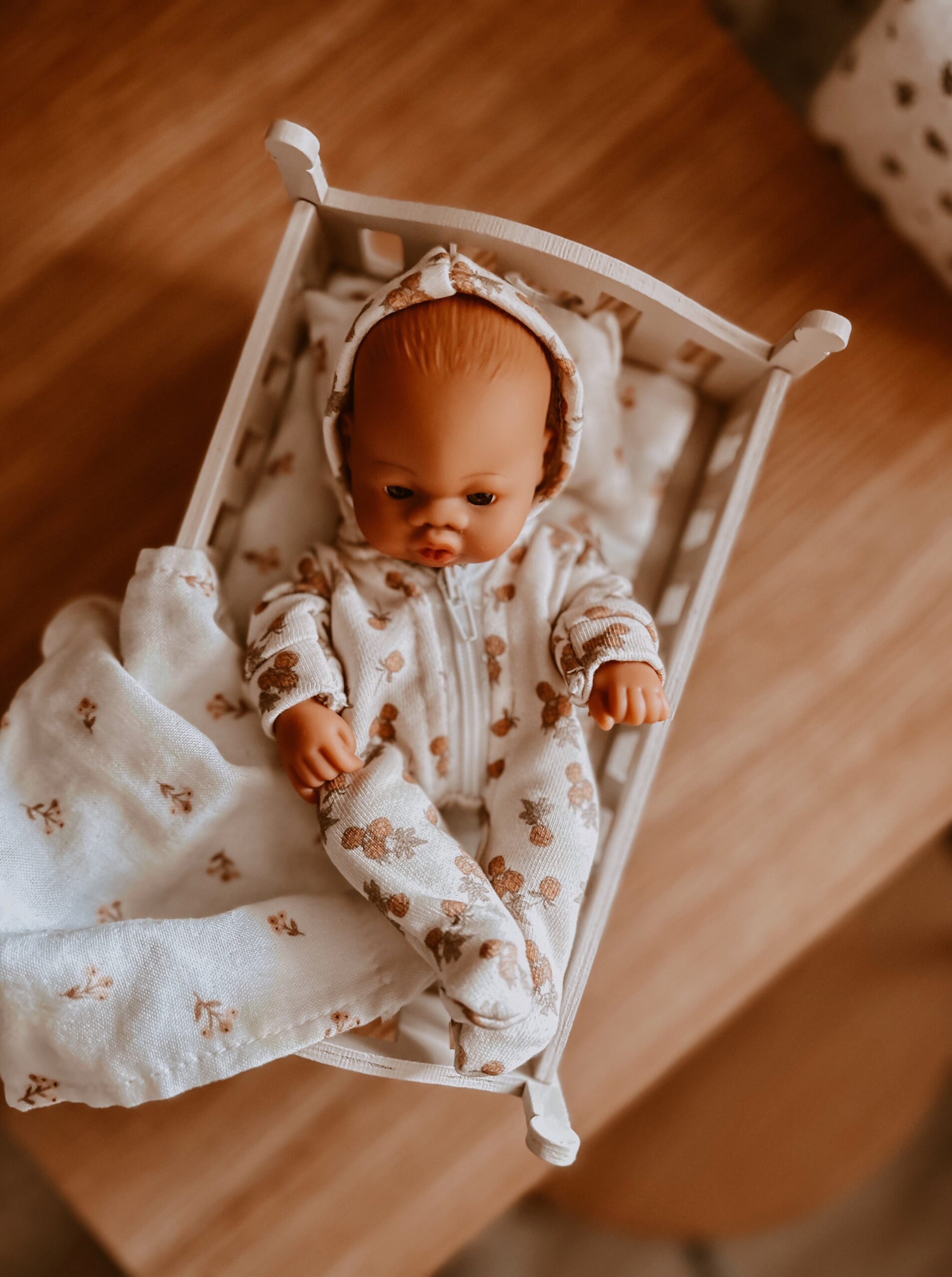 Product Description: Lupitas are extremely malleable and light dolls. They come with a wooden rocking cradle and bedding (mattress, pillow and sheet).
