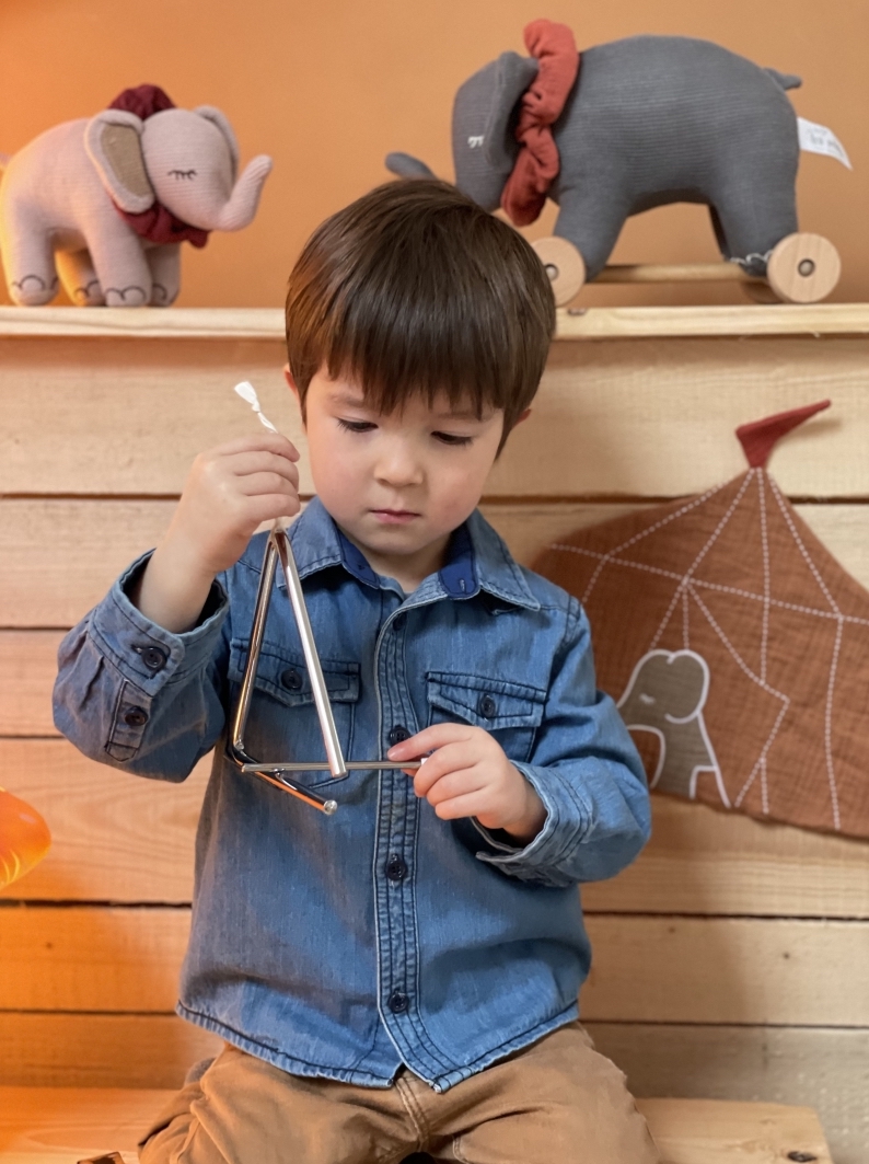 Description: Little hands reach for the shimmering triangle, and suddenly the living room becomes a concert hall. Shake the smooth wooden maracas, tap the jingle bells, beat the drum—every sound layers into something magical. Each instrument helps develop rhythm and motor skills whilst feeling perfectly sized for small fingers. Crafted from natural beech wood with rounded edges, these durable pieces withstand enthusiastic daily performances from toddlers onwards. A musical set that grows with your child, creating countless moments of discovery and joy. Perfect for little musicians ready to make their mark on the world.