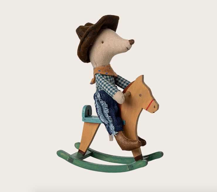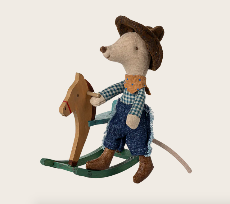 Maileg Cowboy Mouse on Rocking Horse-Little Brother